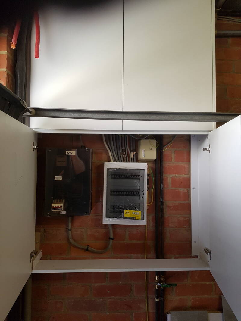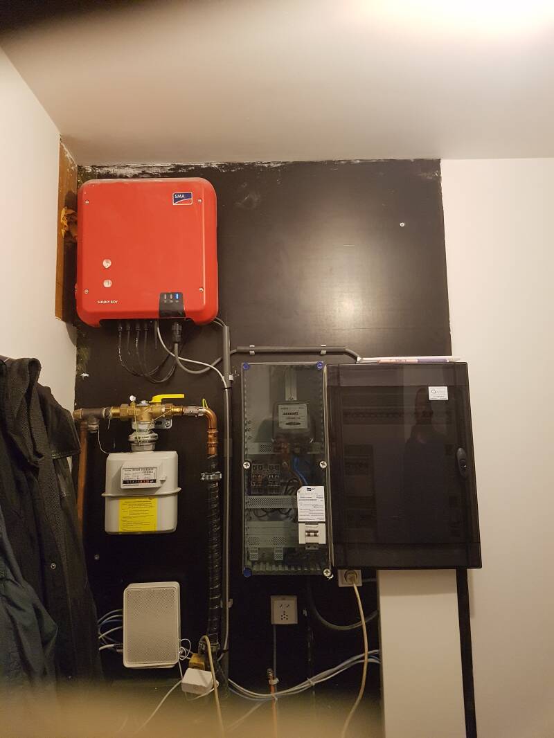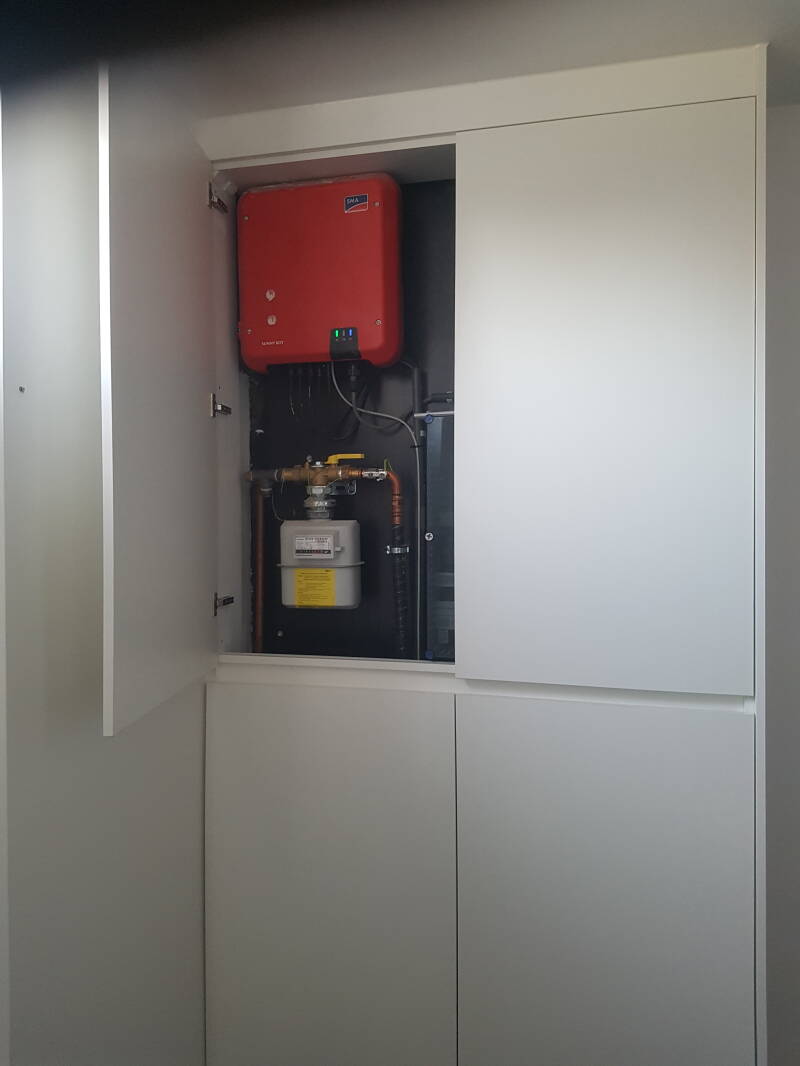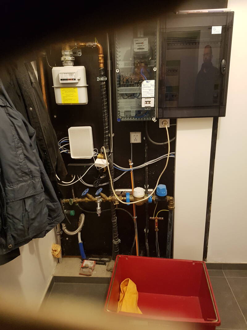 Meters kast , wegbergen van allerlei meters en buizen en elektr.kast , zekeringkast enz.